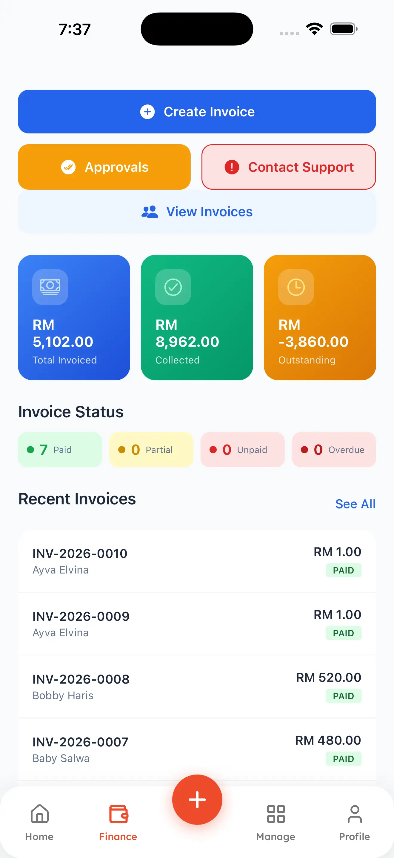 System triggers invoices automatically on student registration. Monthly billing runs itself.
